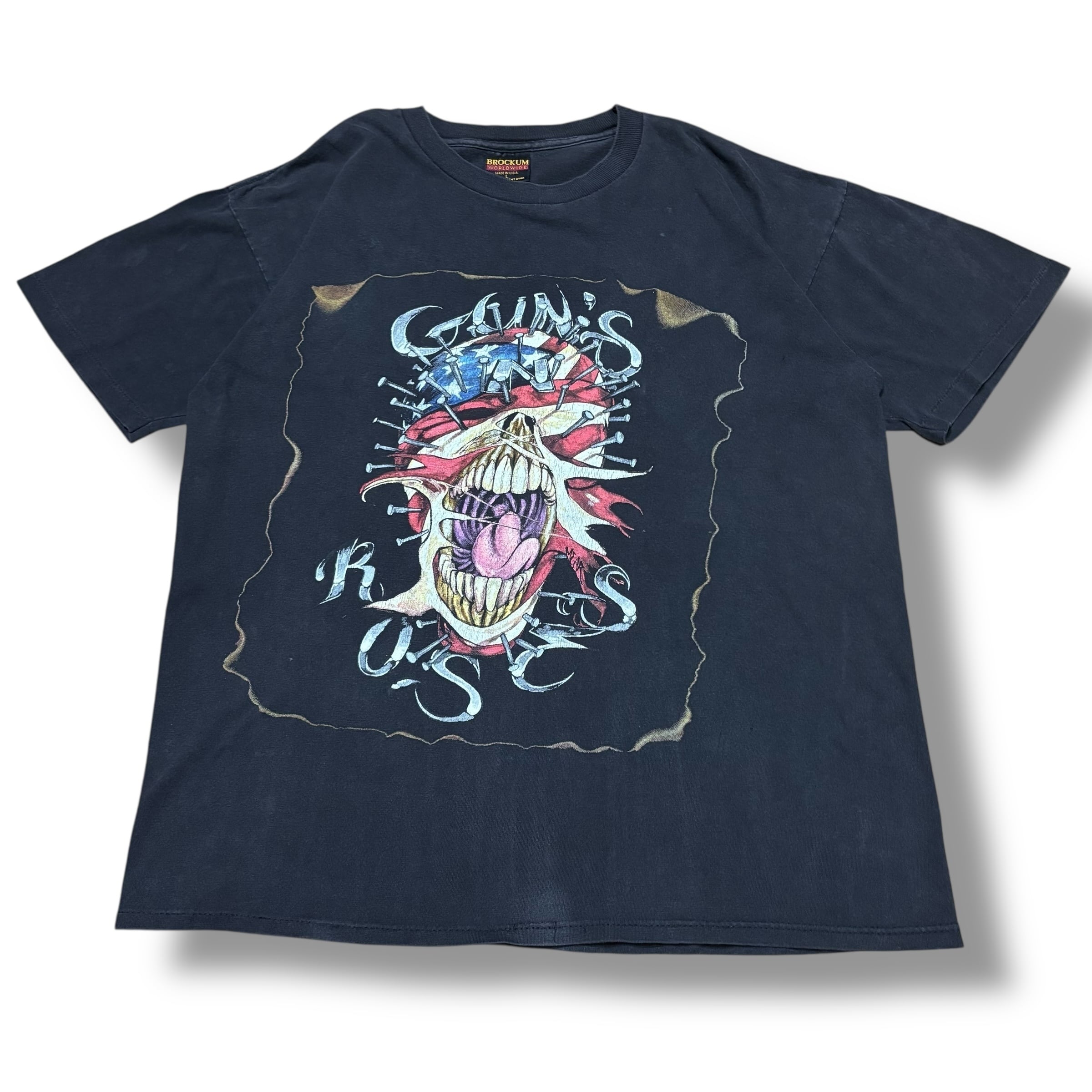 【L】GUNS N' ROSES ©︎1994 "Skull × American Flag design by Mear One" Short Sleeve T-shirt