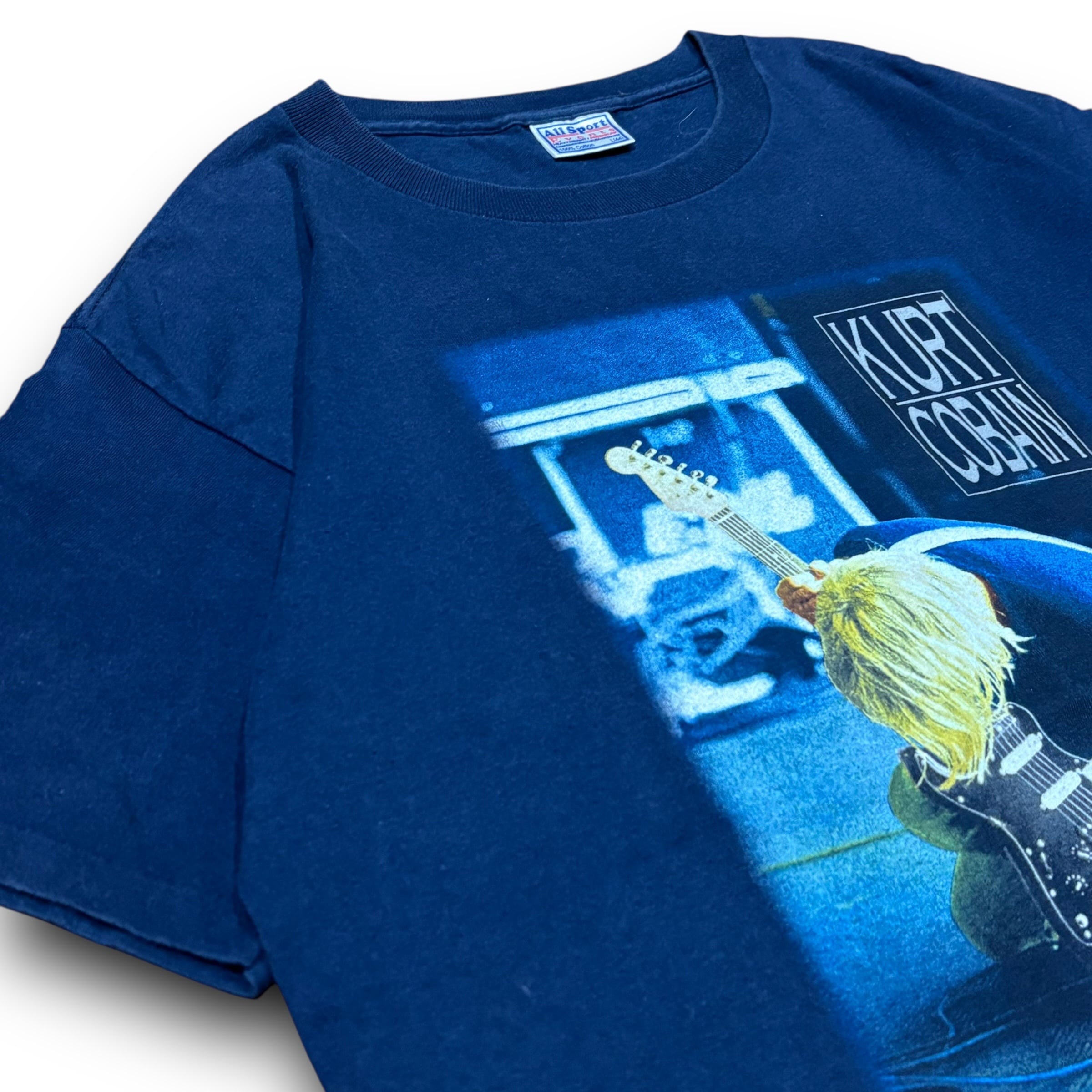 【L】KURT COBAIN ©︎2000 "The End of Music" Navy Short Sleeve T-shirt All Sport Body