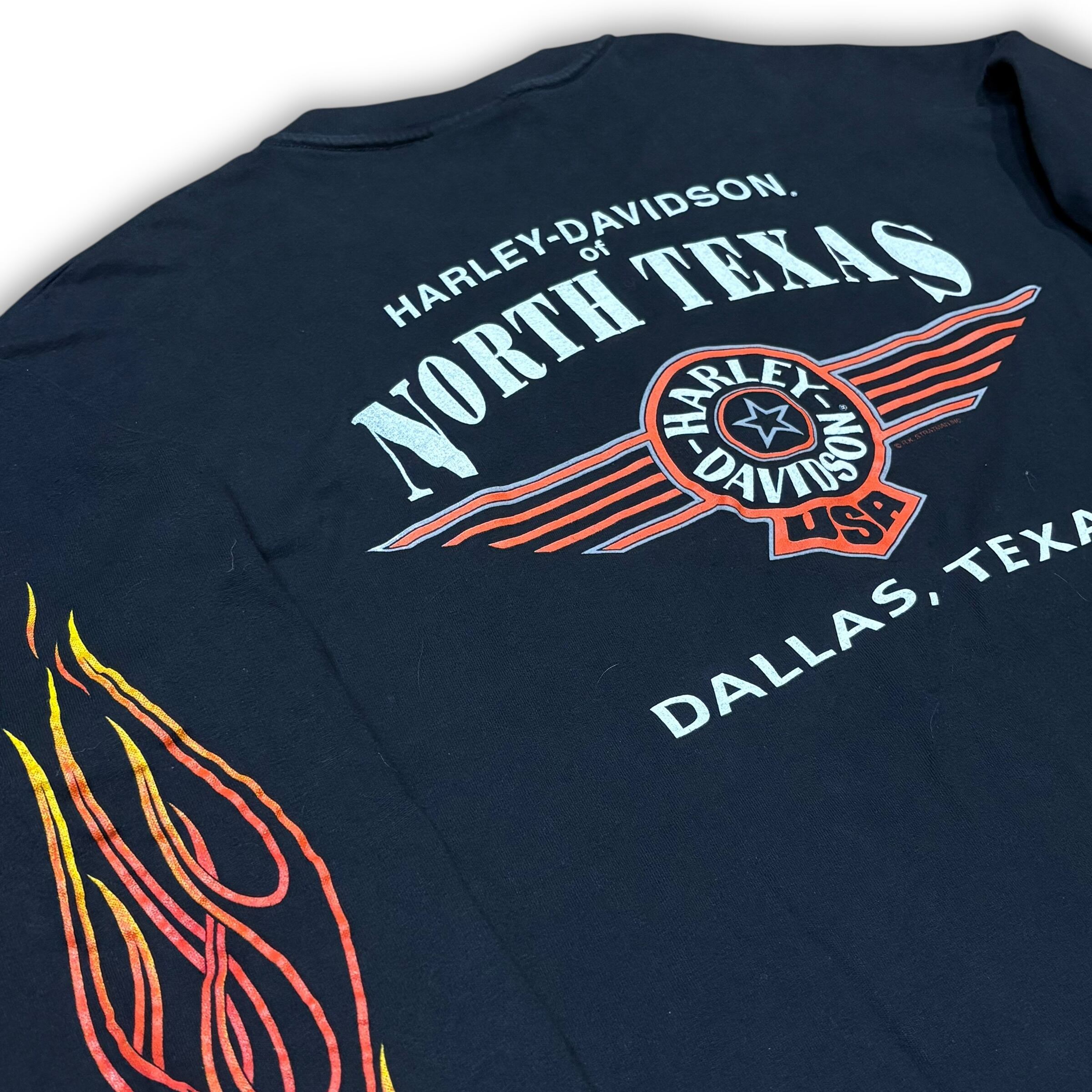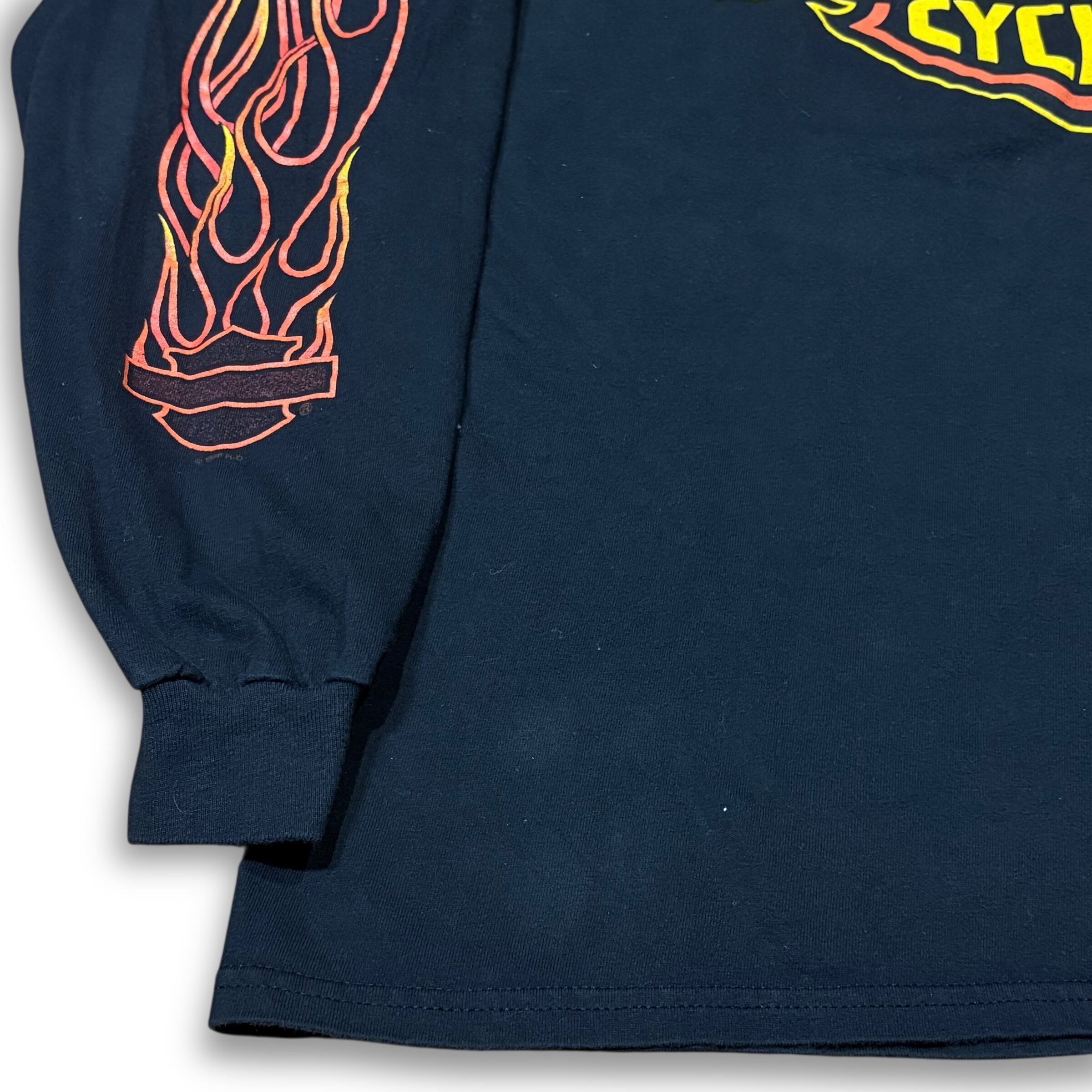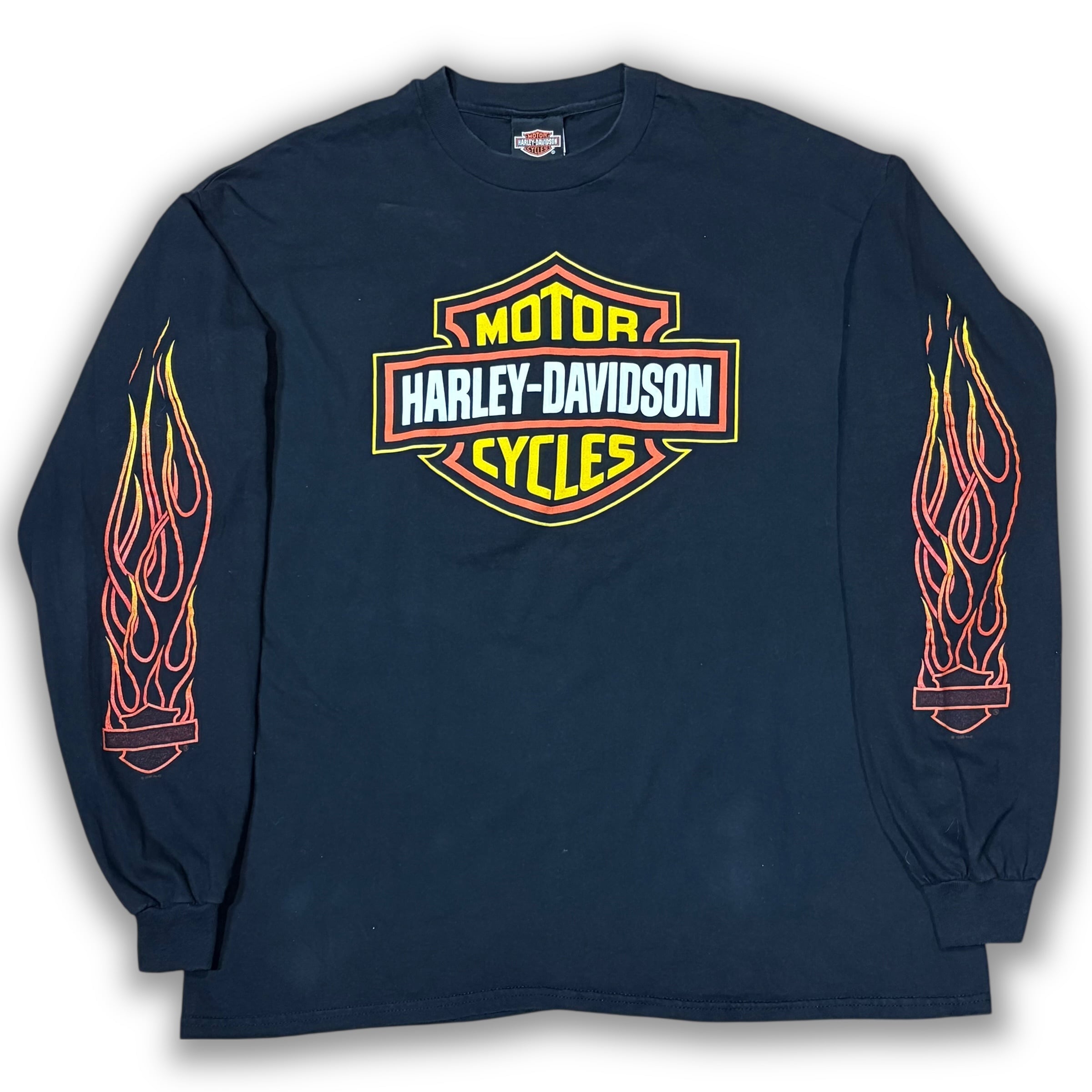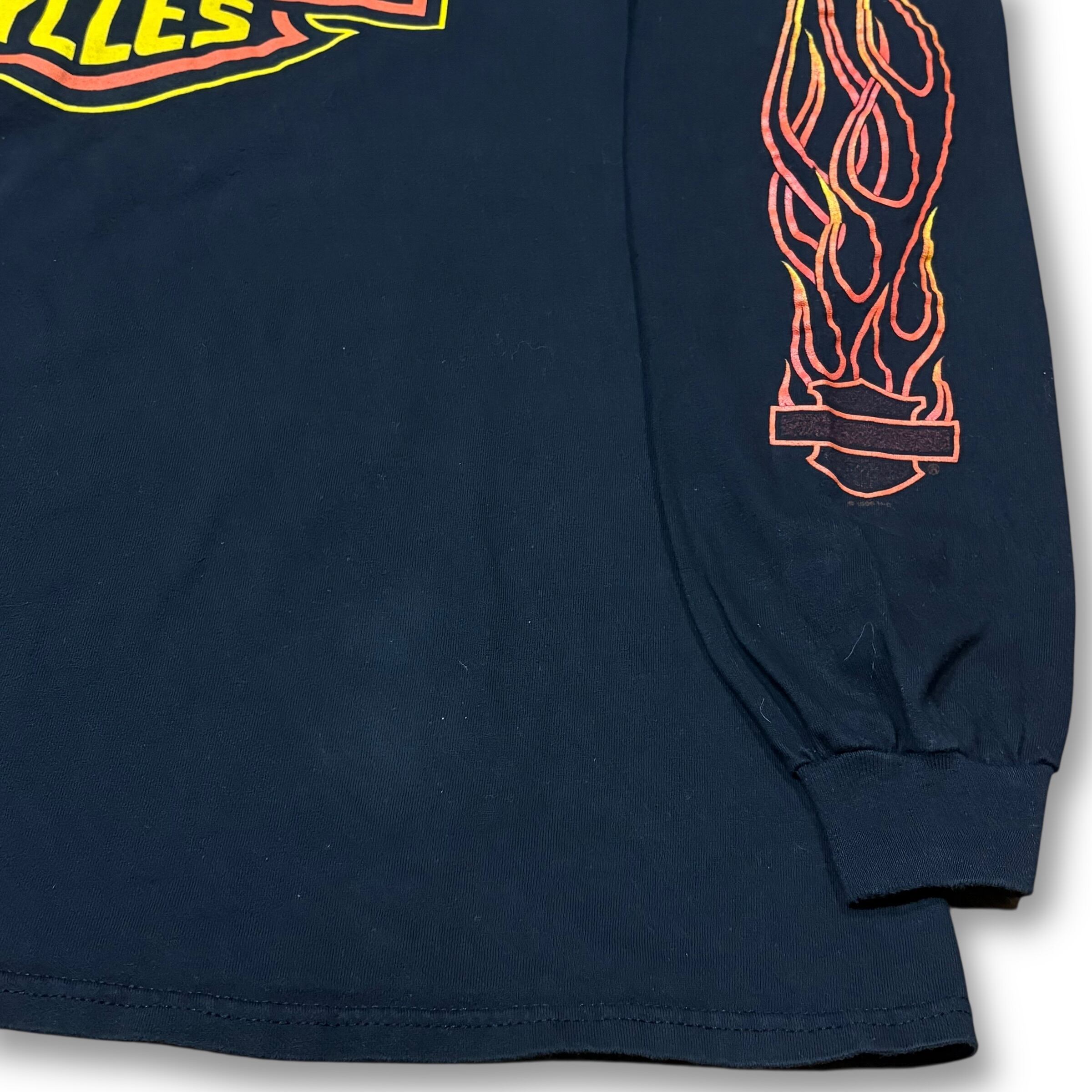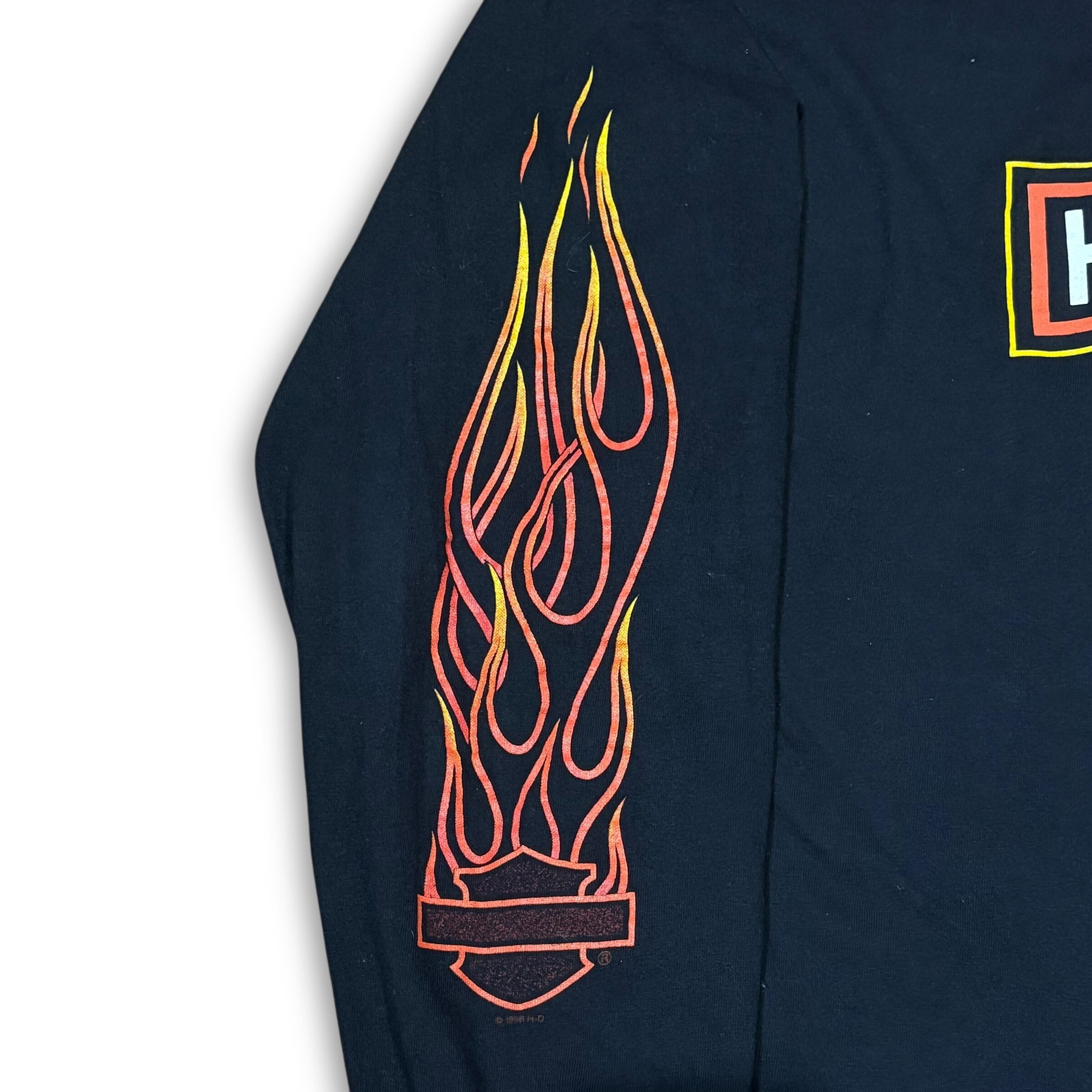 【XL】HARLEY-DAVIDSON ©︎1996 "Orange Bar & Shield Emblem with Flame Arm" Long Sleeve T-shirt