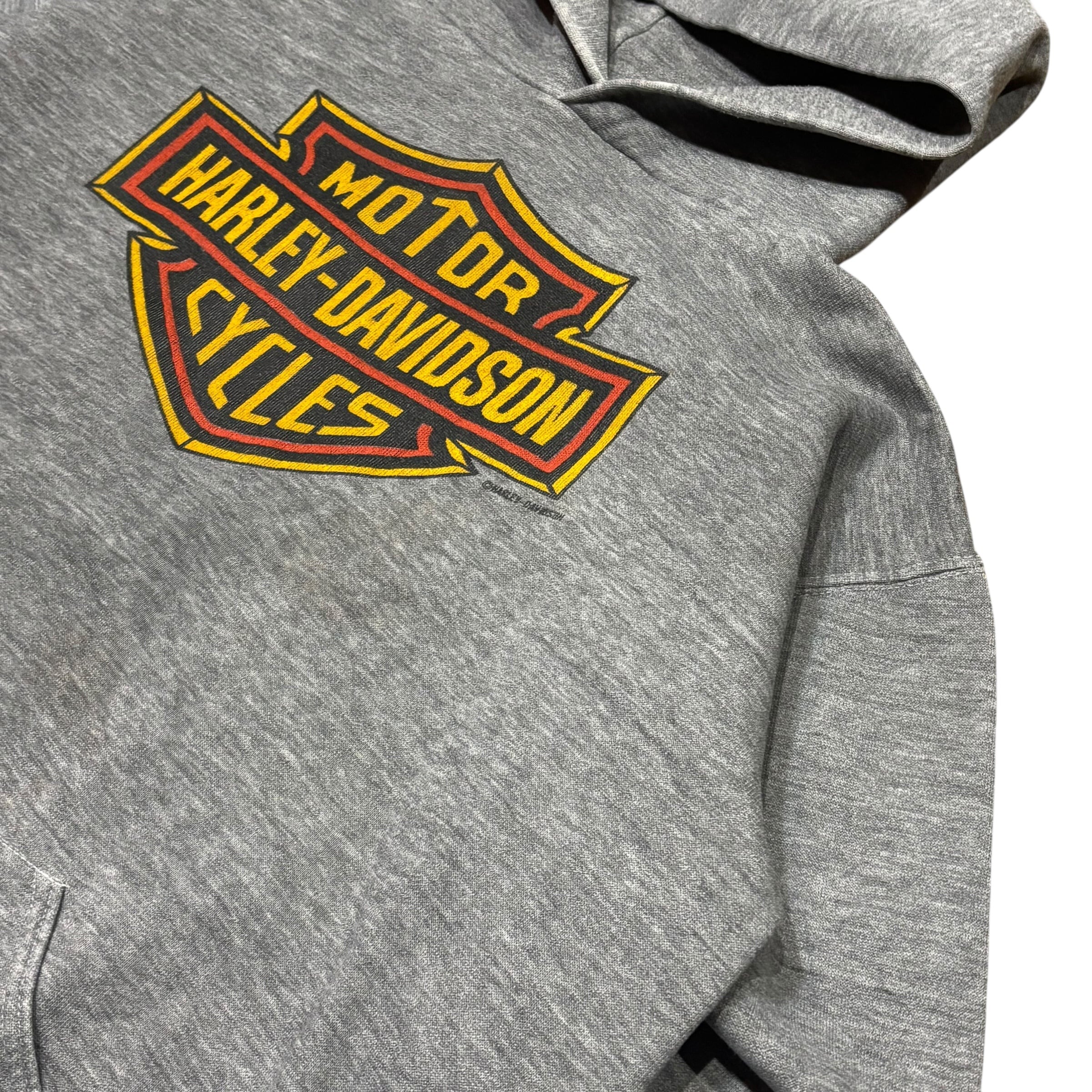 【L】HARLEY-DAVIDSON 80's "ORANGE Bar & Shield" Hoodie RUSSELL ATHLETIC Body